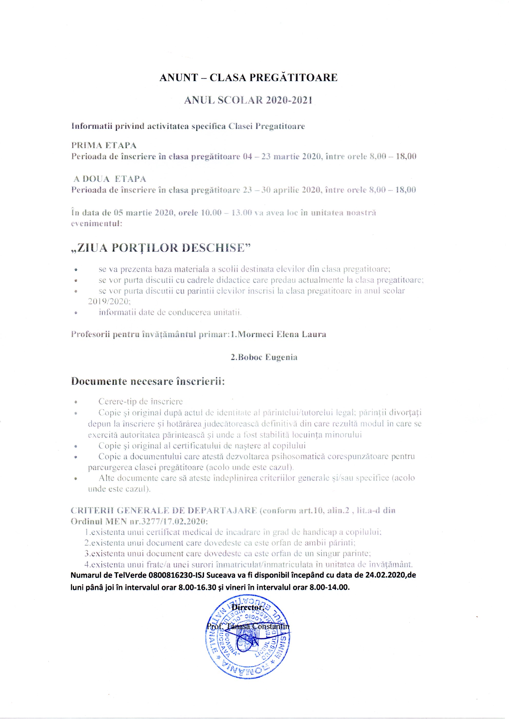 Anunț cu privire la organizarea concursului pentru ocuparea postului de îngrijitor - 0.5 norma postat în data de 24.10.2023